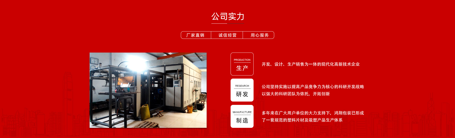 平原縣鴻翔包裝制品有限公司是一家大型生產(chǎn)塑料片材及吸塑產(chǎn)品企業(yè),本公司投資引進電腦自動塑料氣壓成型機,壓片機,全自動高速吸塑機,率先開發(fā)生產(chǎn)PVC片材,PET片材,PS片材,PP片材等,鴻翔是國內先進的生產(chǎn)廠家之一。本公司產(chǎn)品廣泛應用于醫(yī)藥、食品、化妝品、日用品、農業(yè)、五金、電子元件、工藝品等行業(yè),也可根據(jù)客戶需求自行設計制作模具。本公司技術力量雄厚,生產(chǎn)設備工藝先進。我們秉承用戶至上的經(jīng)營宗旨,竭誠為您服務。